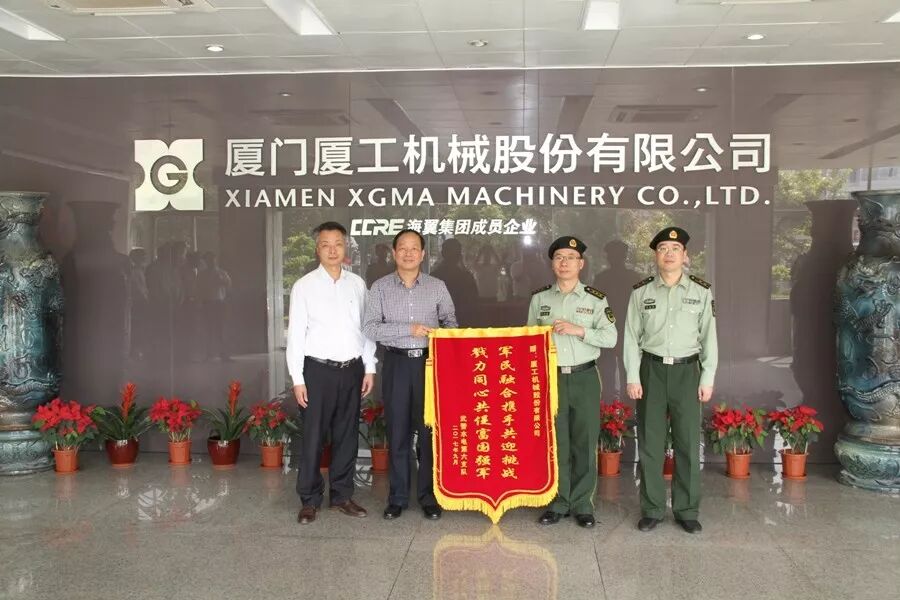 近日,驻厦武警水电二总队六支队一行七人在支队长吴诗铭、政委吴春波带领下专程来到厦工走访交流,并送来一份“沉甸甸”的感谢信及锦旗,特别感谢厦工在厦门金砖会晤期间积极协助武警水电部队高效履行伴随保障任务作出的突出贡献。厦工股份董事长许振明、总裁王功尤、营销总监黄聪红等出席活动。