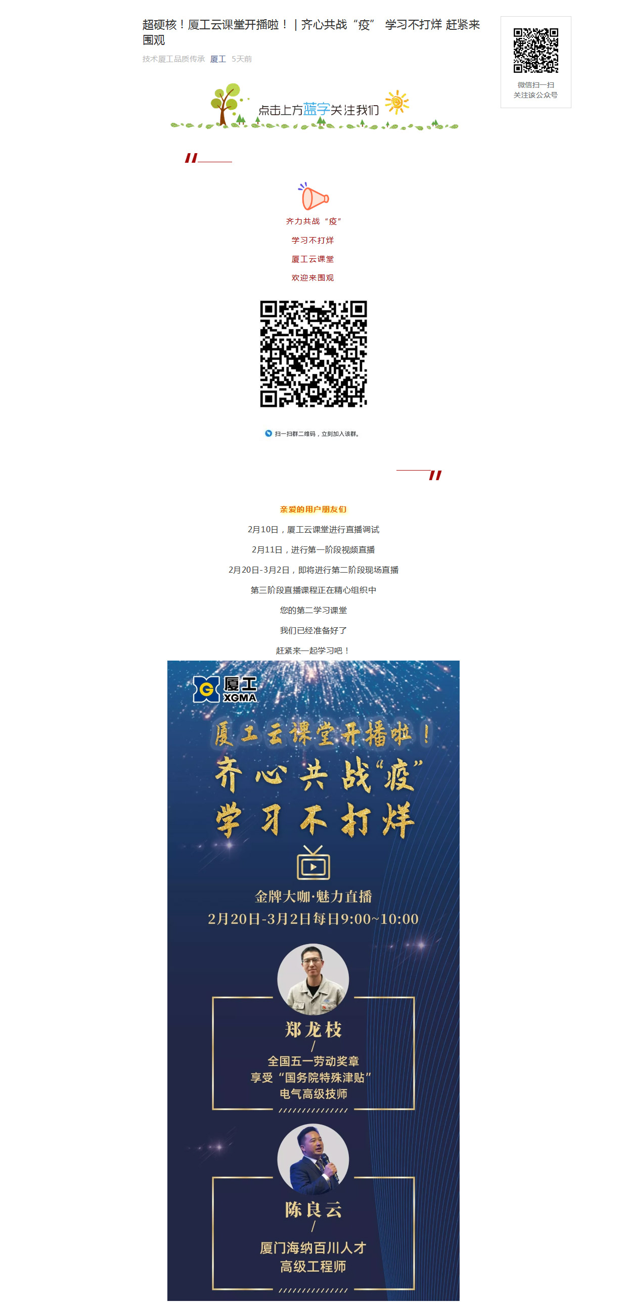 超硬核!厦工云课堂开播啦! | 齐心共战“疫” 学习不打烊 赶紧来围观